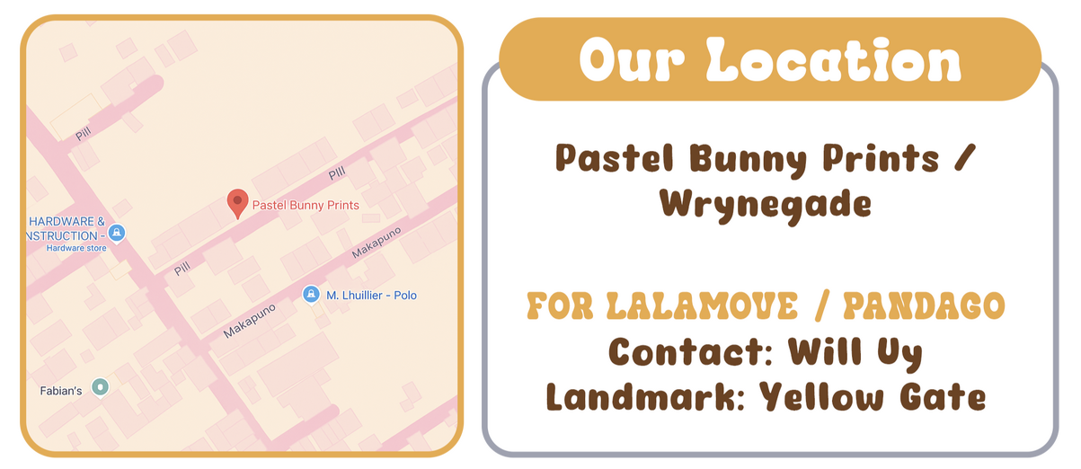 • PASTEL BUNNY PRINTS has the right to decline the Client’s request of service if it IS NOT possible to complete the service due to certain limitations such as time, quantity needed, and/or material availability.• PASTEL BUNNY PRINTS can reject working with certain individuals if the Client doesn't comply to the terms, if they exhibit unruly behavior, and/ or other reasons.•PASTEL BUNNY PRINTS IS NOT RESPONSIBLE FOR MISALIGNMENT OR OTHER ISSUES IF THE CLIENT DOES NOT USE OUR TEMPLATES AND GUIDES.•PASTEL BUNNY PRINTS will be collecting and posting images of the services availed publicly on their socials with the Artist credited.