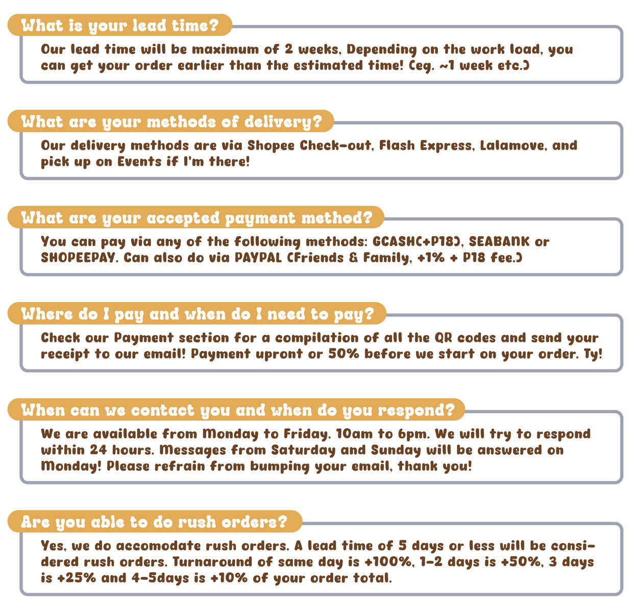 •Our lead time only includes business days. Saturdays are rest day and sundays are maintenance for our printers.